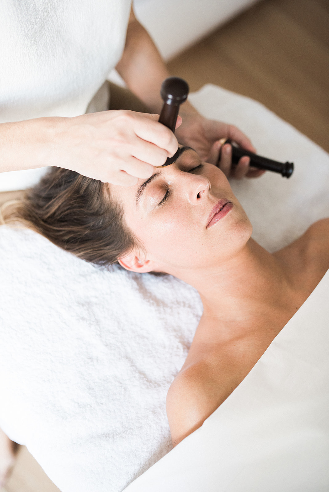 Mediante la herramienta ancestral ayurveda, KANSA WAND, se equilibra cuerpo y mente a la vez que se relaja y tonifica la musculatura facial.